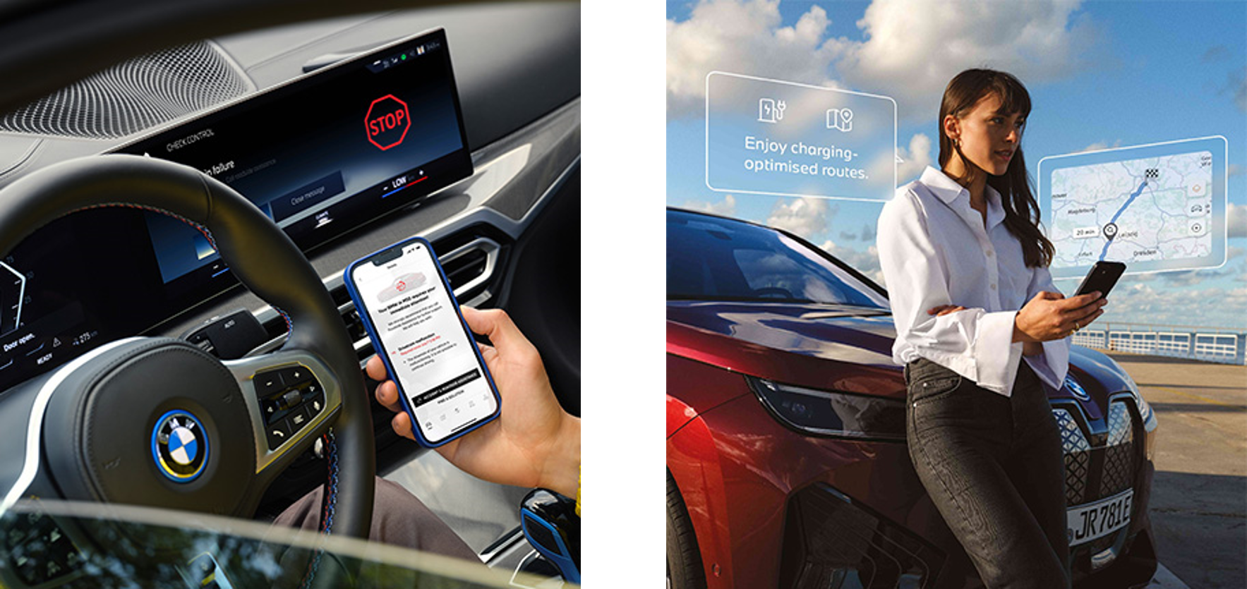 El sistema se basa en que el auto tiene un chip digital, conocido como e-Sim, lo cual facilita que el vehículo esté constantemente conectados a la red, ofreciendo dentro del pilar My Car, distintos servicios que, dependiendo del equipamiento del vehículo, permiten por ejemplo, monitorear los alrededores del auto, si el vehículo tiene el sistema Parking Assistant Plus es posible acceder a una visualización remota mediante las cámaras 360° en la aplicación My BMW App, el usuario puede ver incluso desde otro país, si no hay nadie cerca, o ver dónde se dejó estacionado.