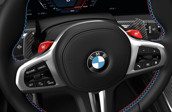 Experimenta un verdadero apoyo lateral con la construcción reforzada de los asientos multifuncionales M estándar y la tapicería de cuero Merino agregan un toque de lujo.