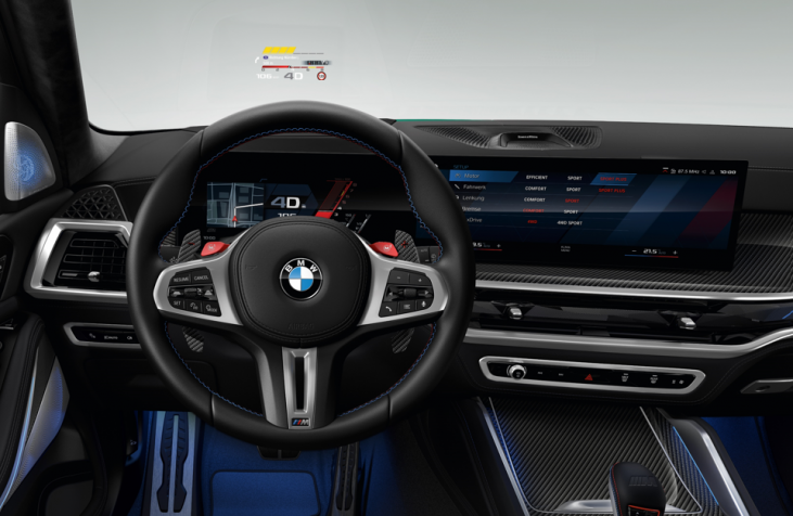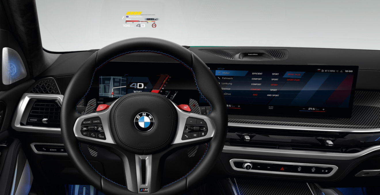 Un techo interior de antracita con costuras decorativas en los colores BMW M, además de grupo de instrumentos específicos de M se encuentran en todos Modelos X5 M.